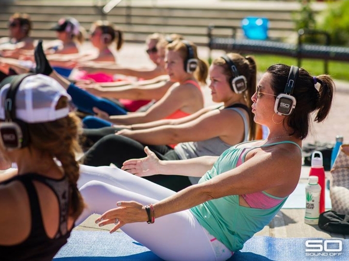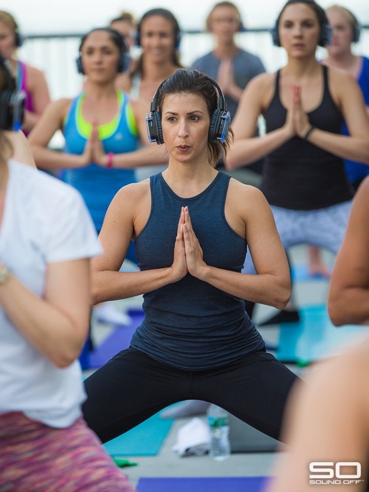 Sound Off™ deep flow yoga is an innovative journey of flowing movement and sound. Immerse yourself in the beauty and motion of yoga with a pair of noise isolating wireless LED headphones which lets you hear the instructor at the perfect level while their curated set takes you on a musical journey into sound.